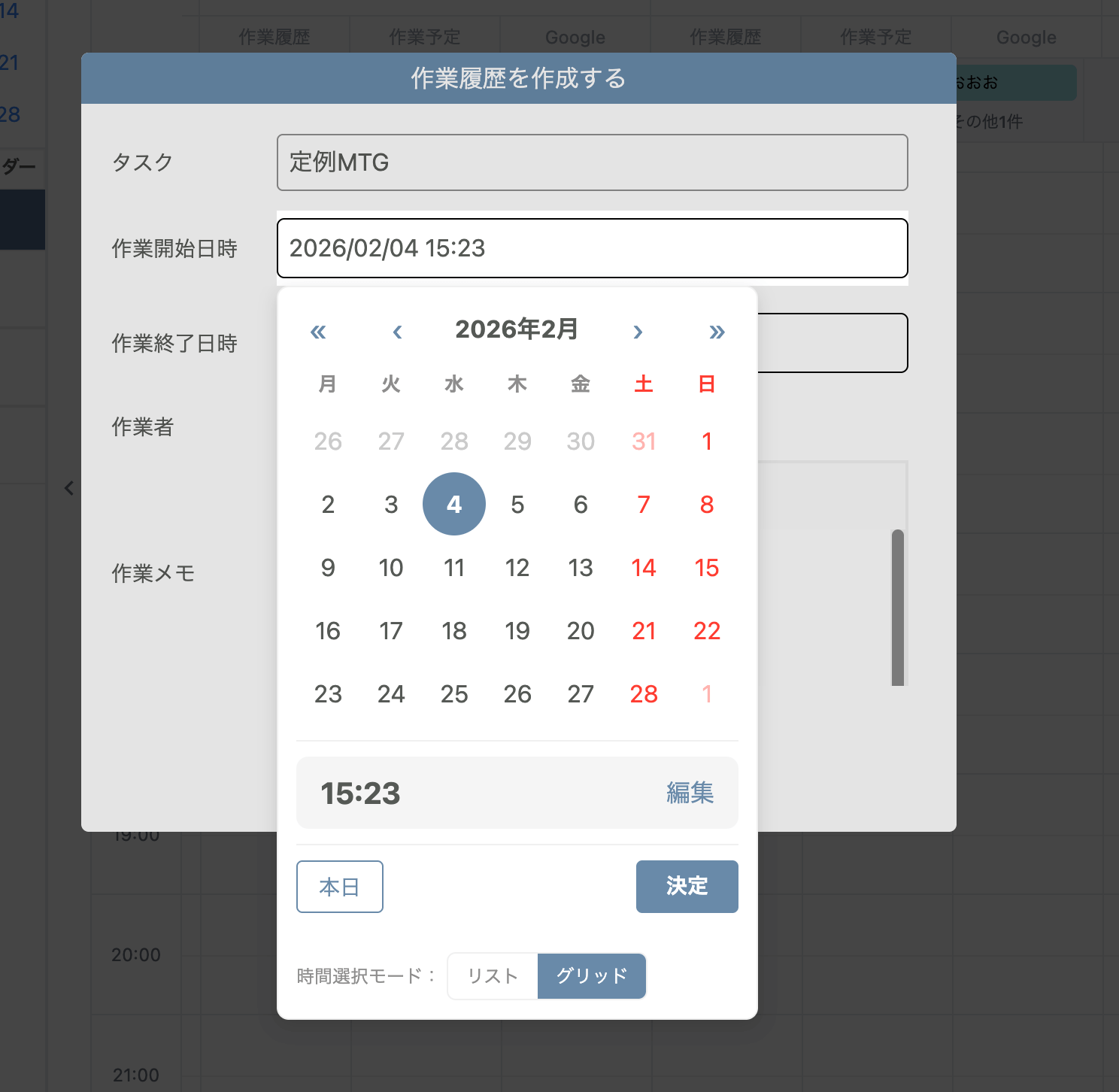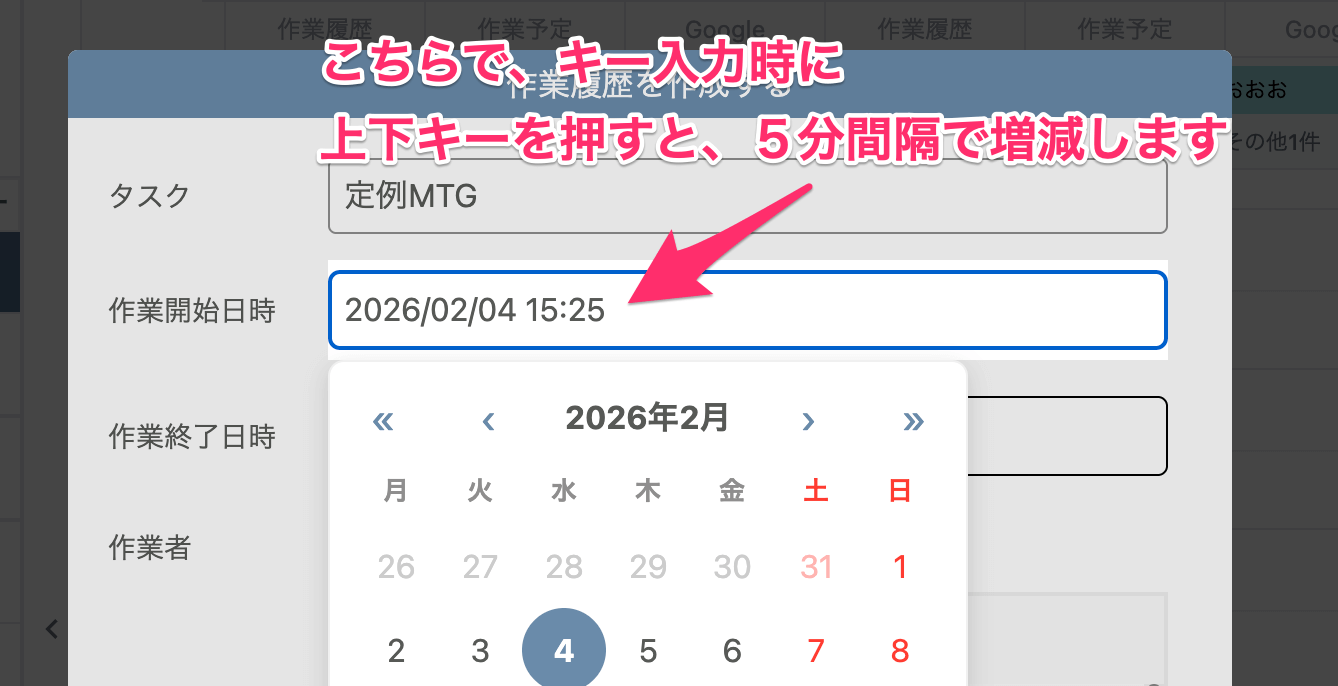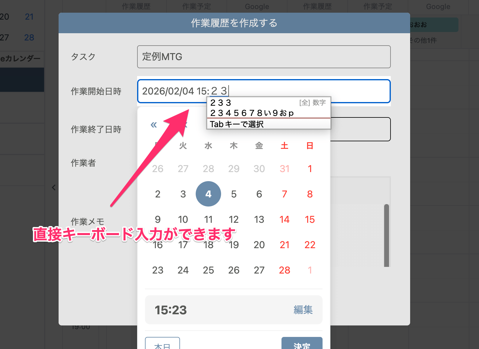 作業の開始・終了日時や、タスクの〆切日など、日付や日時を入力する方法について改善を行いました。