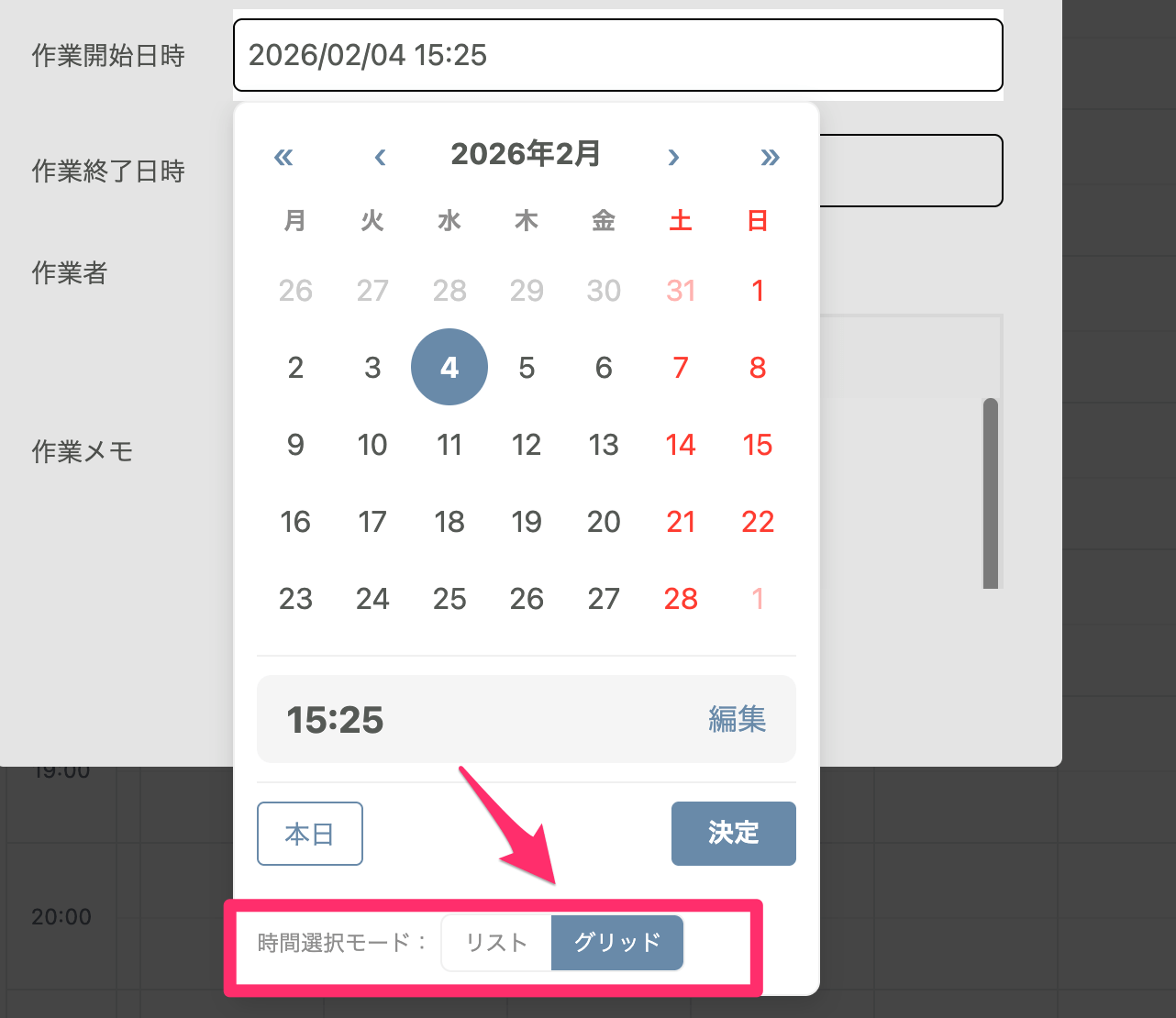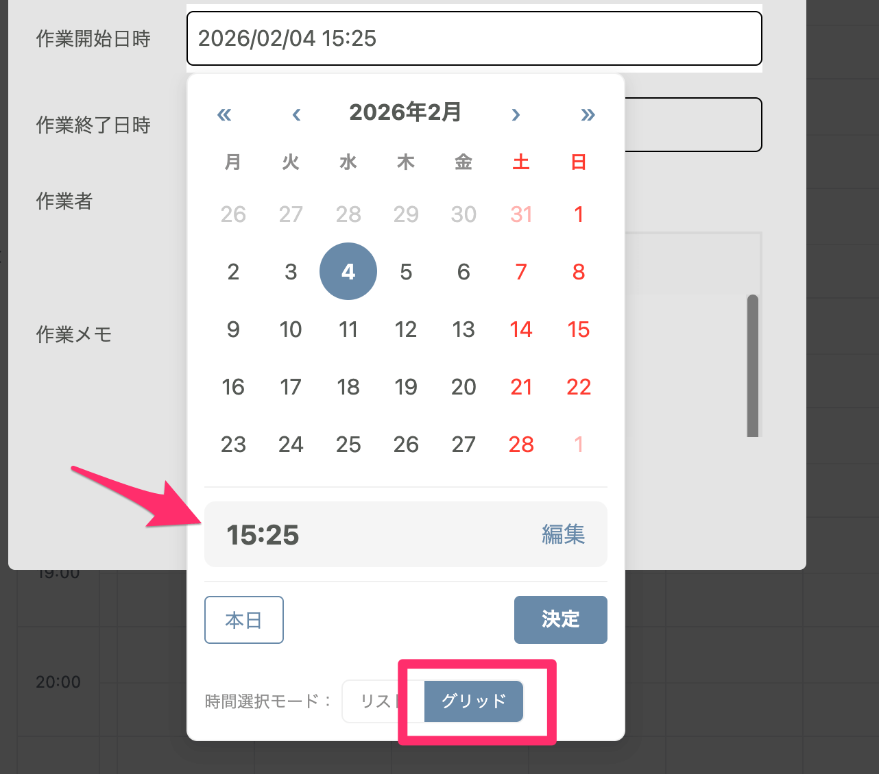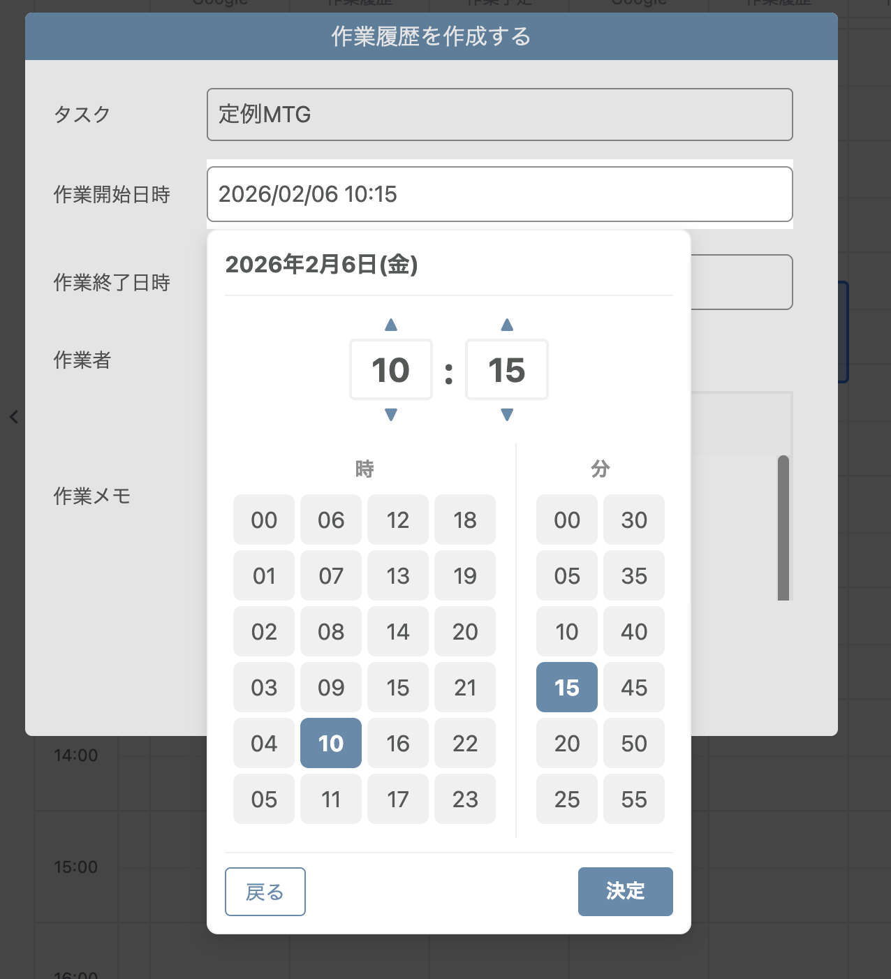 作業の開始・終了日時や、タスクの〆切日など、日付や日時を入力する方法について改善を行いました。