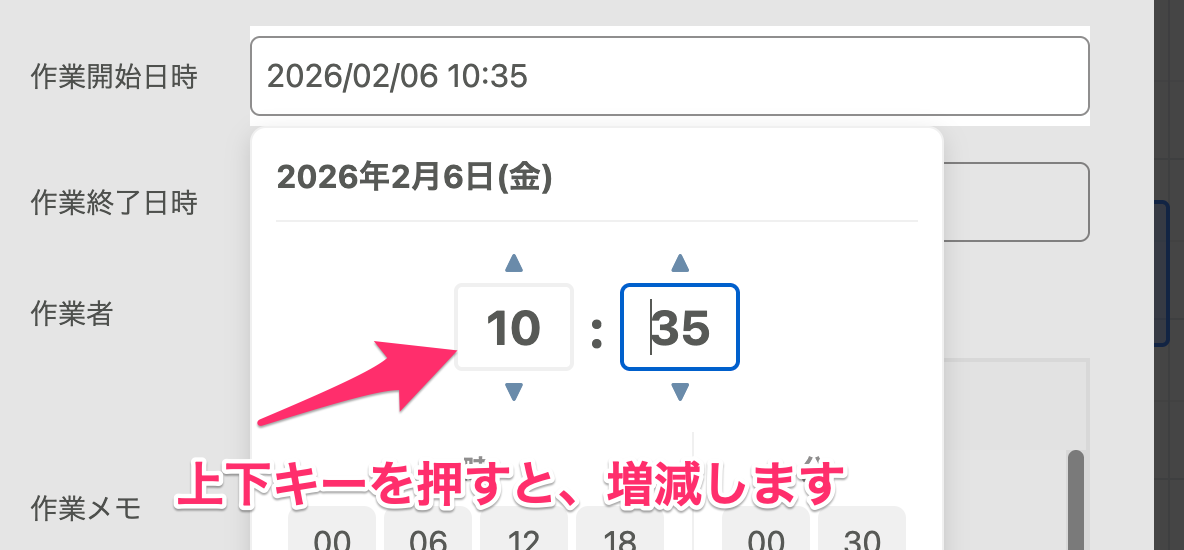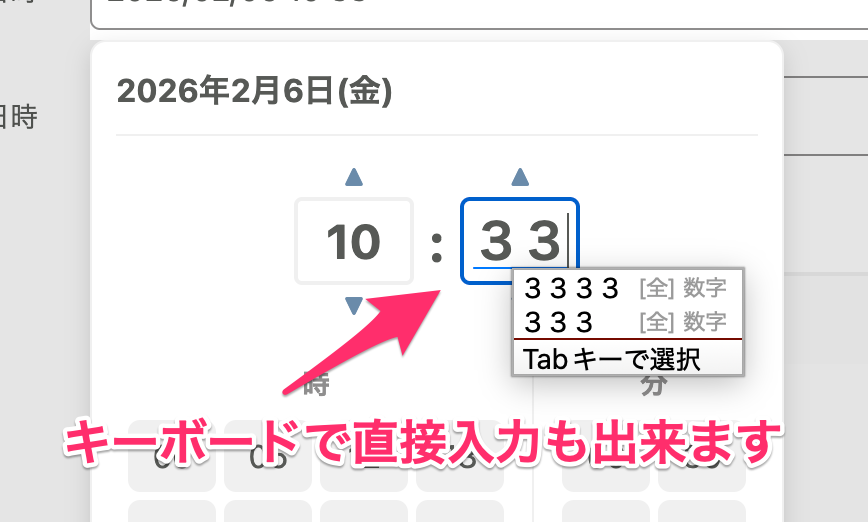 キーボード入力を主体として操作する方は、 素早く入力したい場合、直接キーボードで日時を入力していただくのがオススメです。