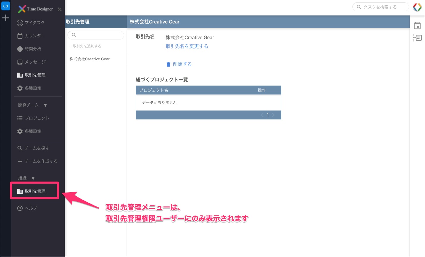 取引先管理権限がある場合、取引先の登録・削除の操作を行うことができます。