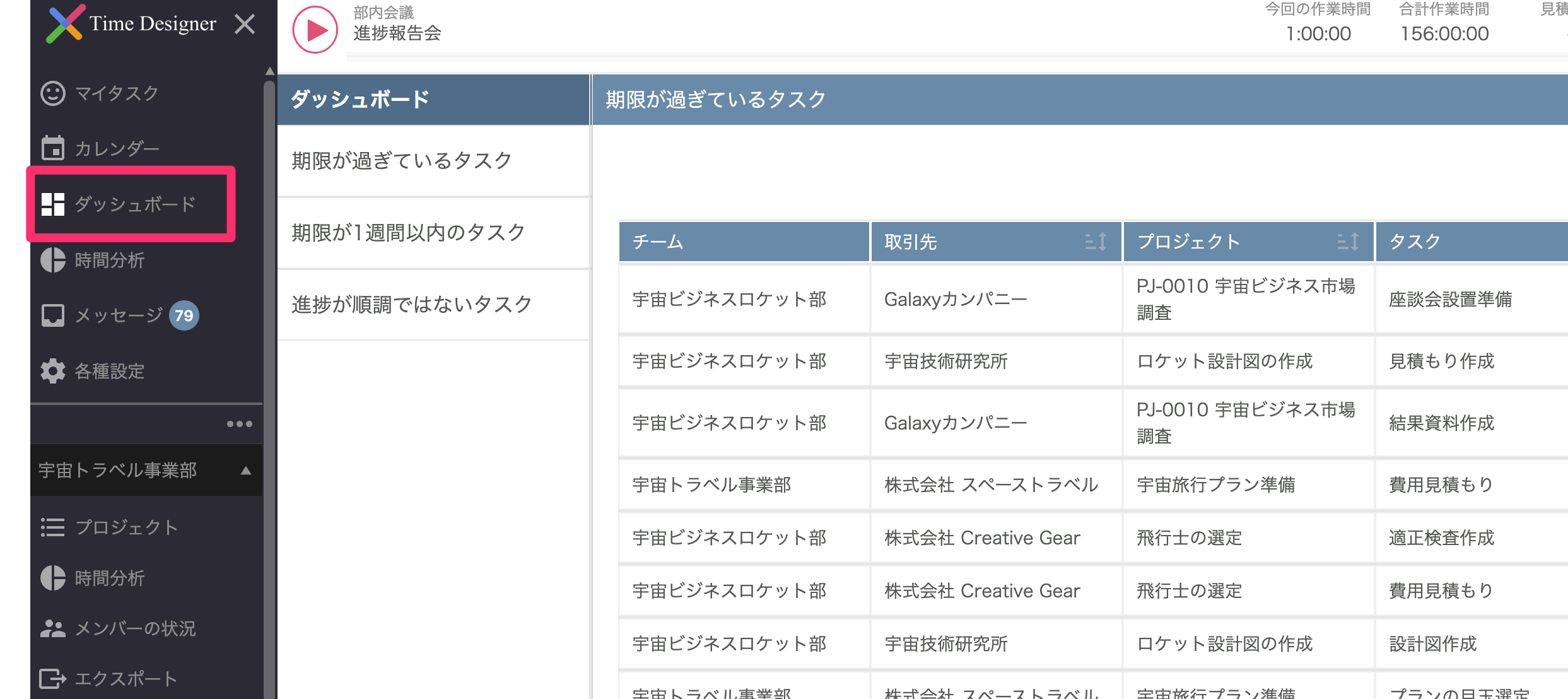 ダッシュボード画面について、もともとは1つの画面で複数のデータを表示しておりましたが、 「期限が過ぎているタスク」「期限が1週間以内のタスク」「進捗が順調ではないタスク」の 3つの一覧画面に分割をし、目的別に一覧を参照できるようにいたしました。