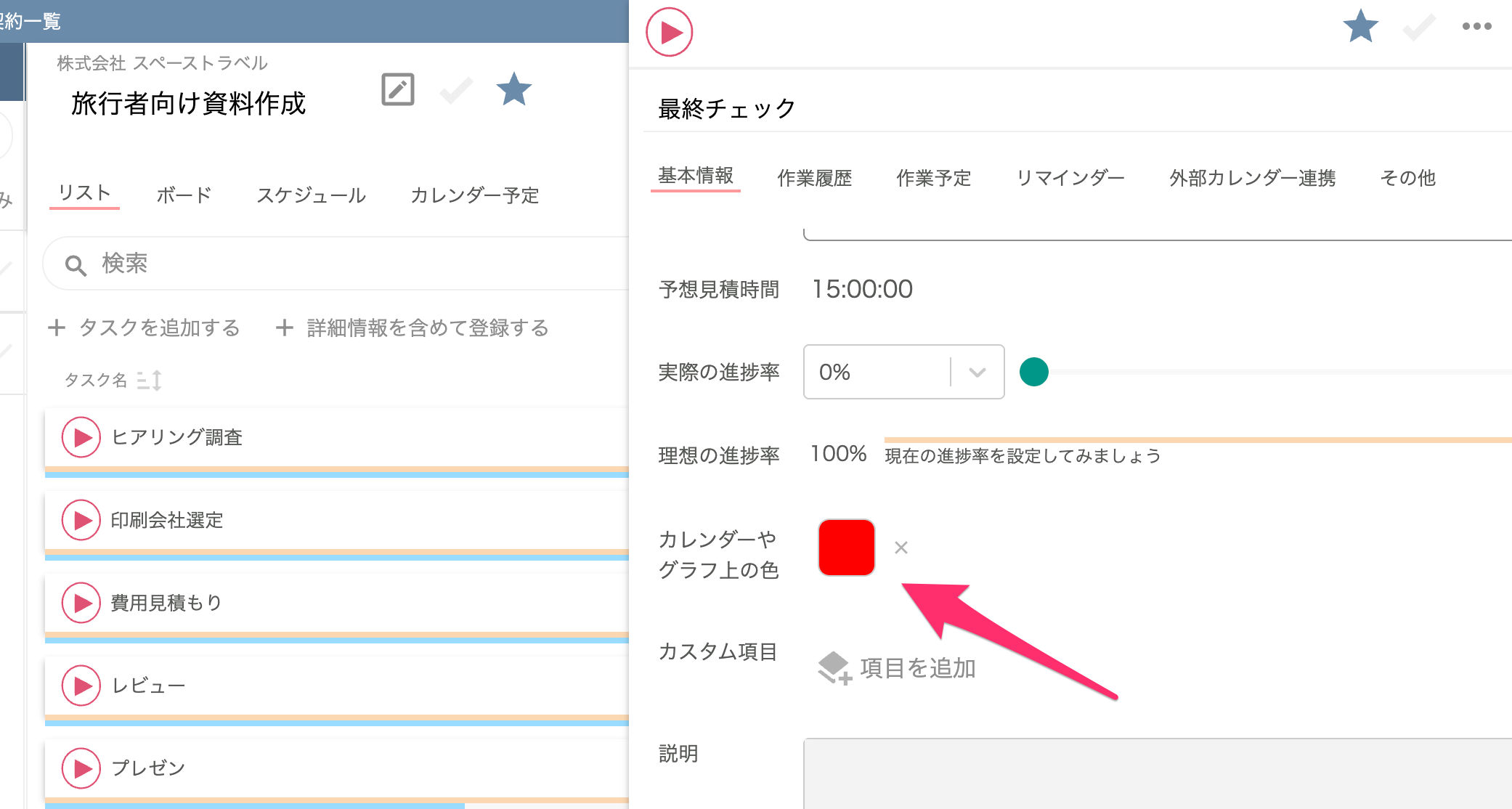 今回新たに「タスク」についても「色」を設定できるようになりました。